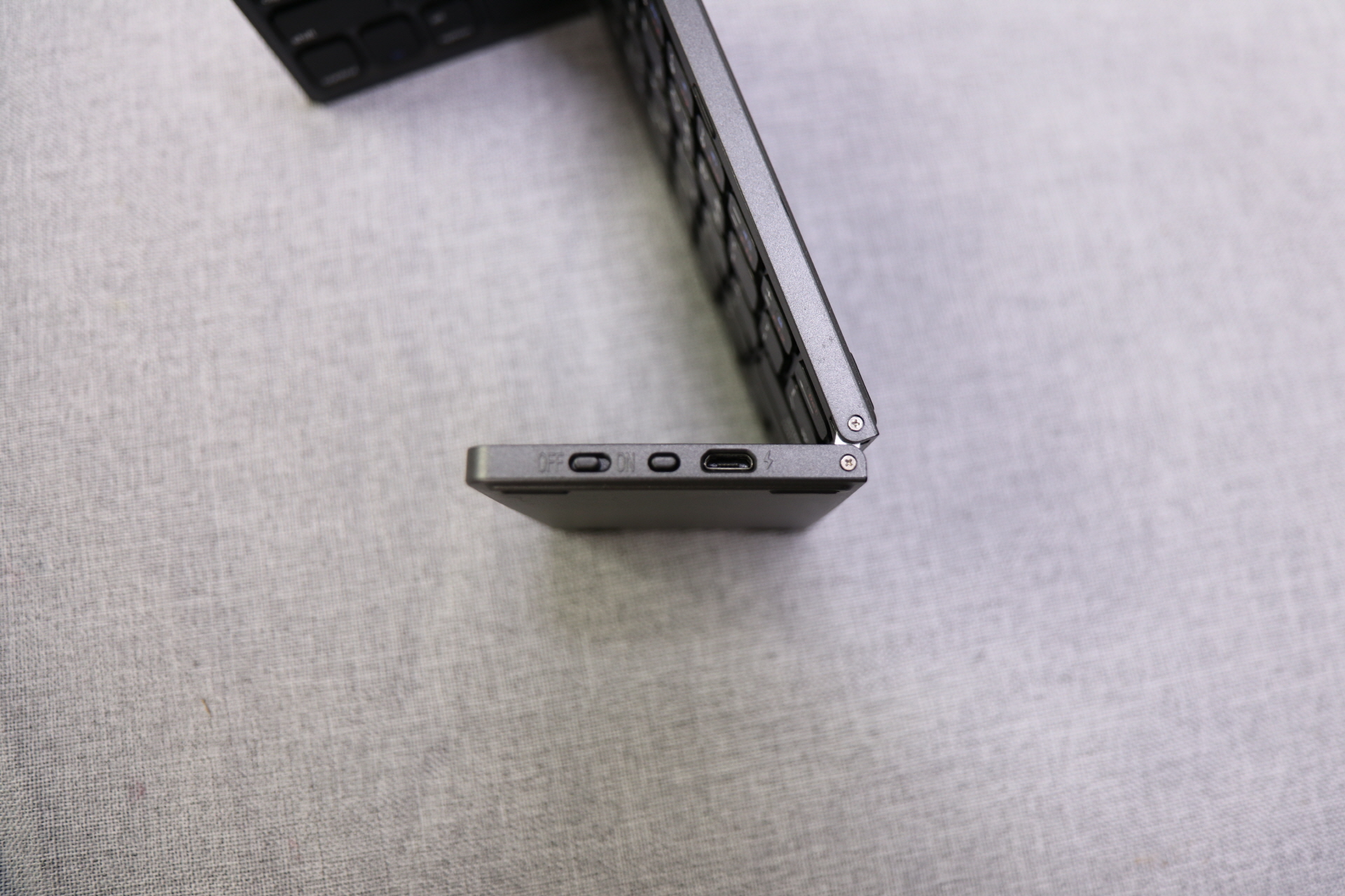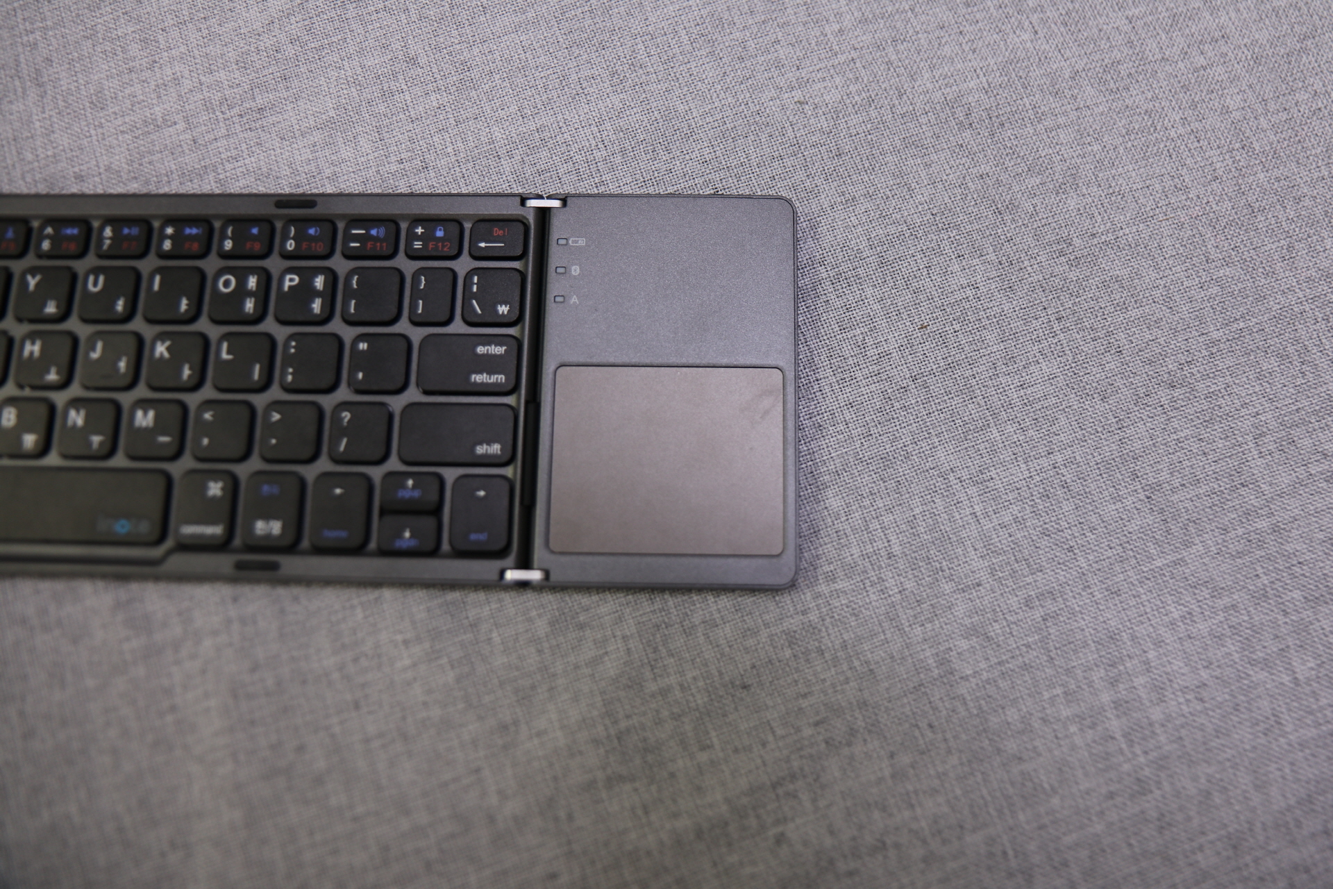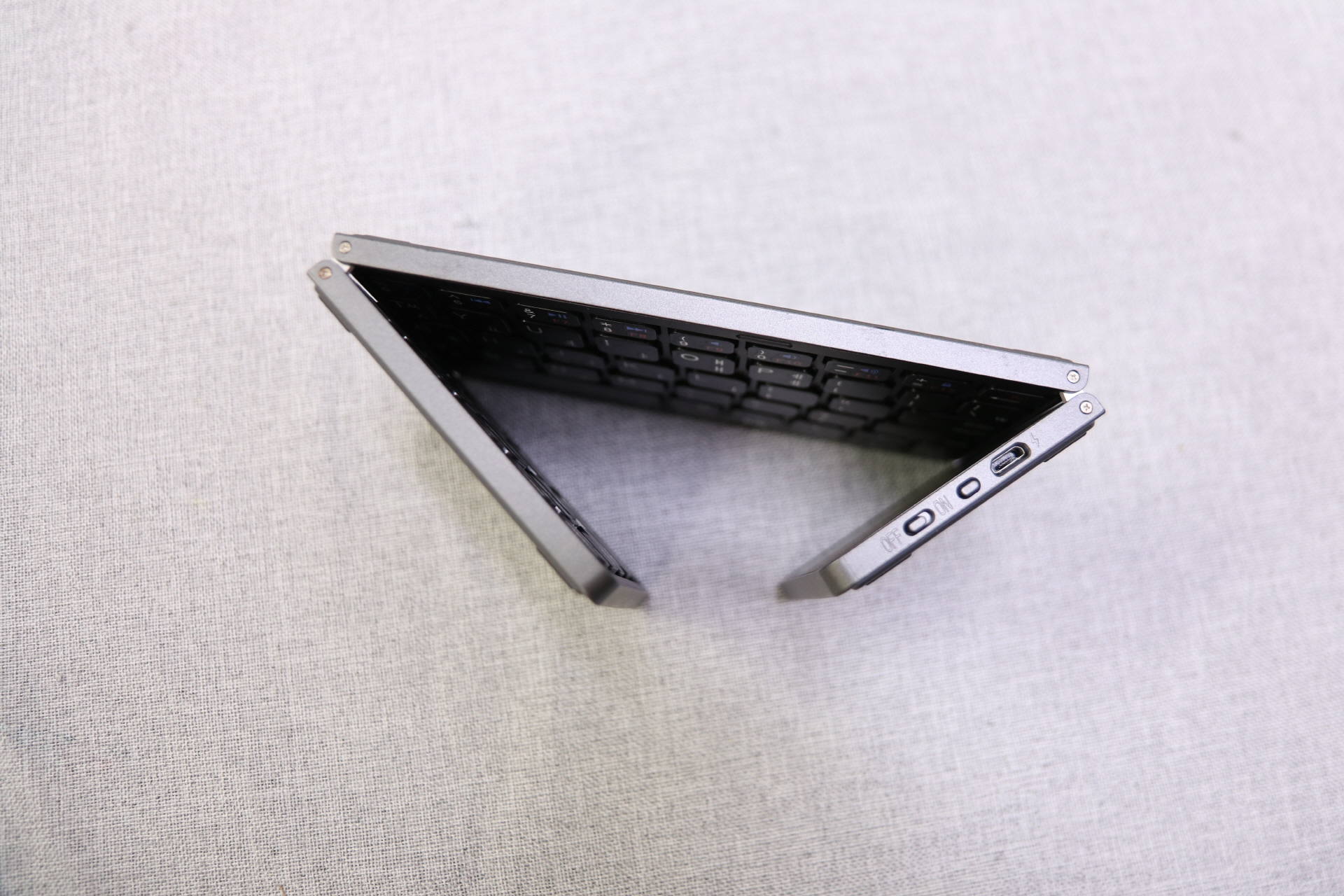 접기 직전의 키보드를 위에서 찍어 봤어요